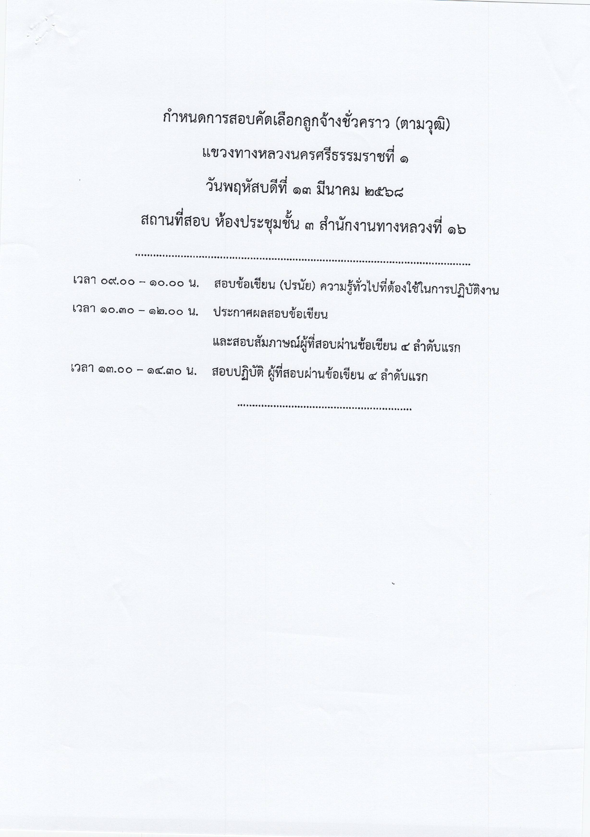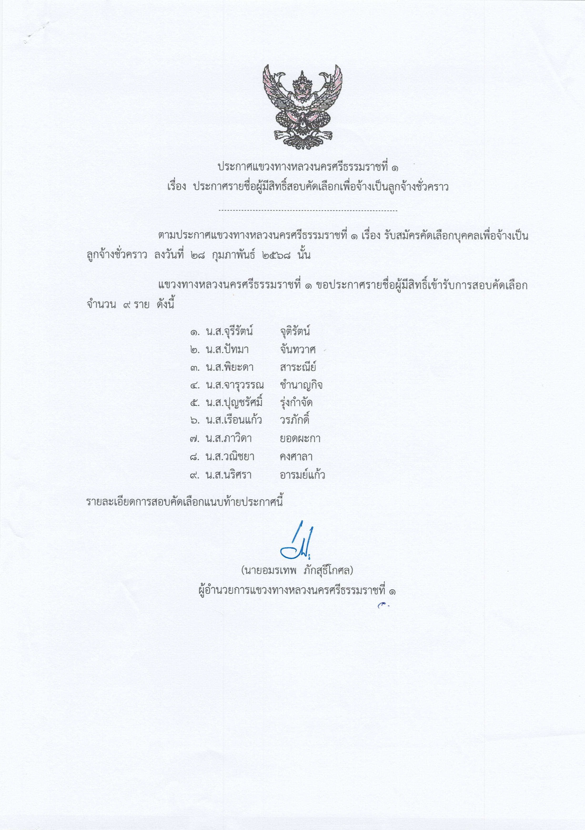 ประกาศรายชื่อผู้มีสิทธิ์สอบคัดเลือกเพื่อจ้างเป็นลูกจ้างชั่วคราว
