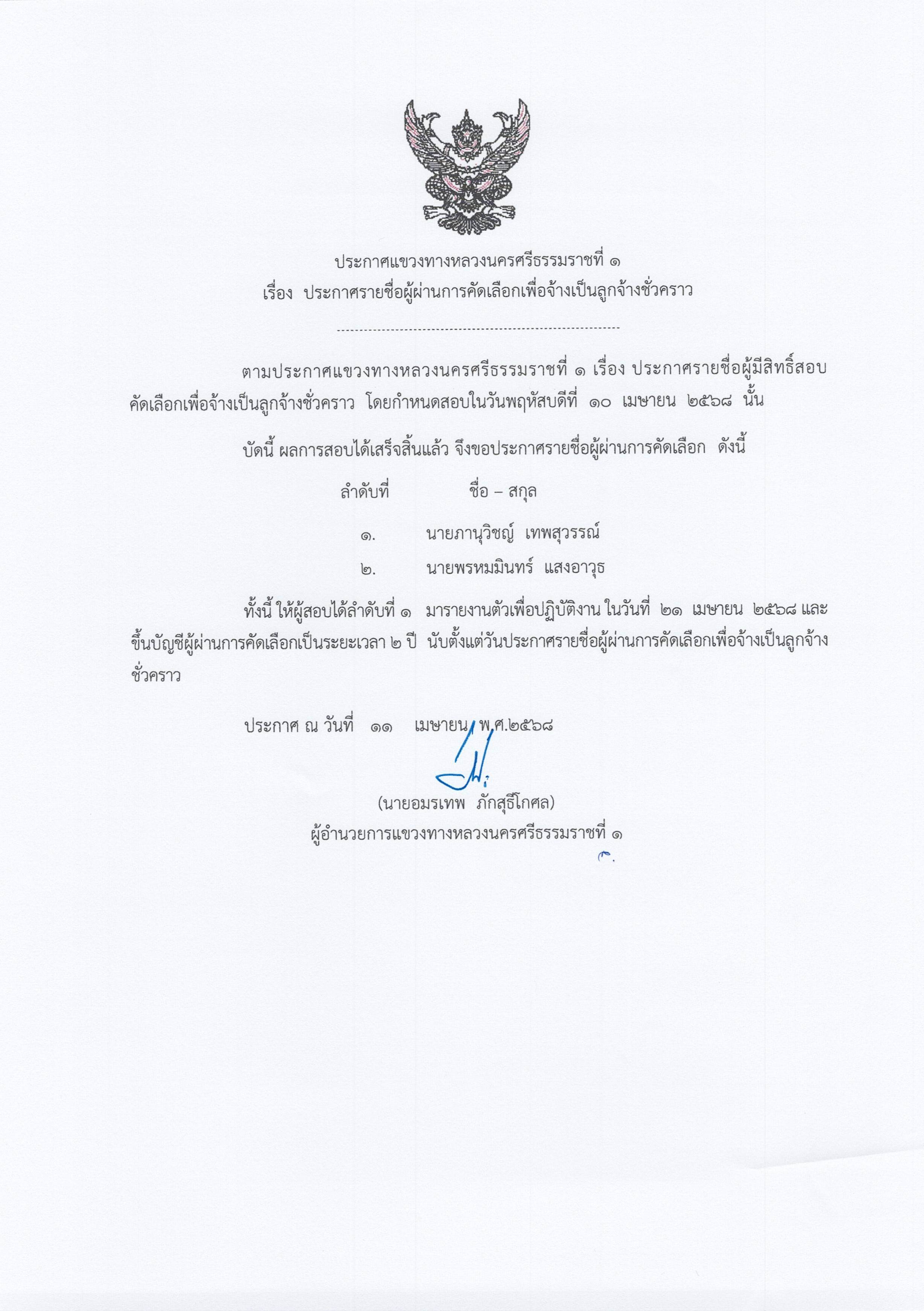 ประกาศรายชื่อผู้มีสิทธิ์สอบคัดเลือกเพื่อจ้างเป็นลูกจ้างชั่วคราว