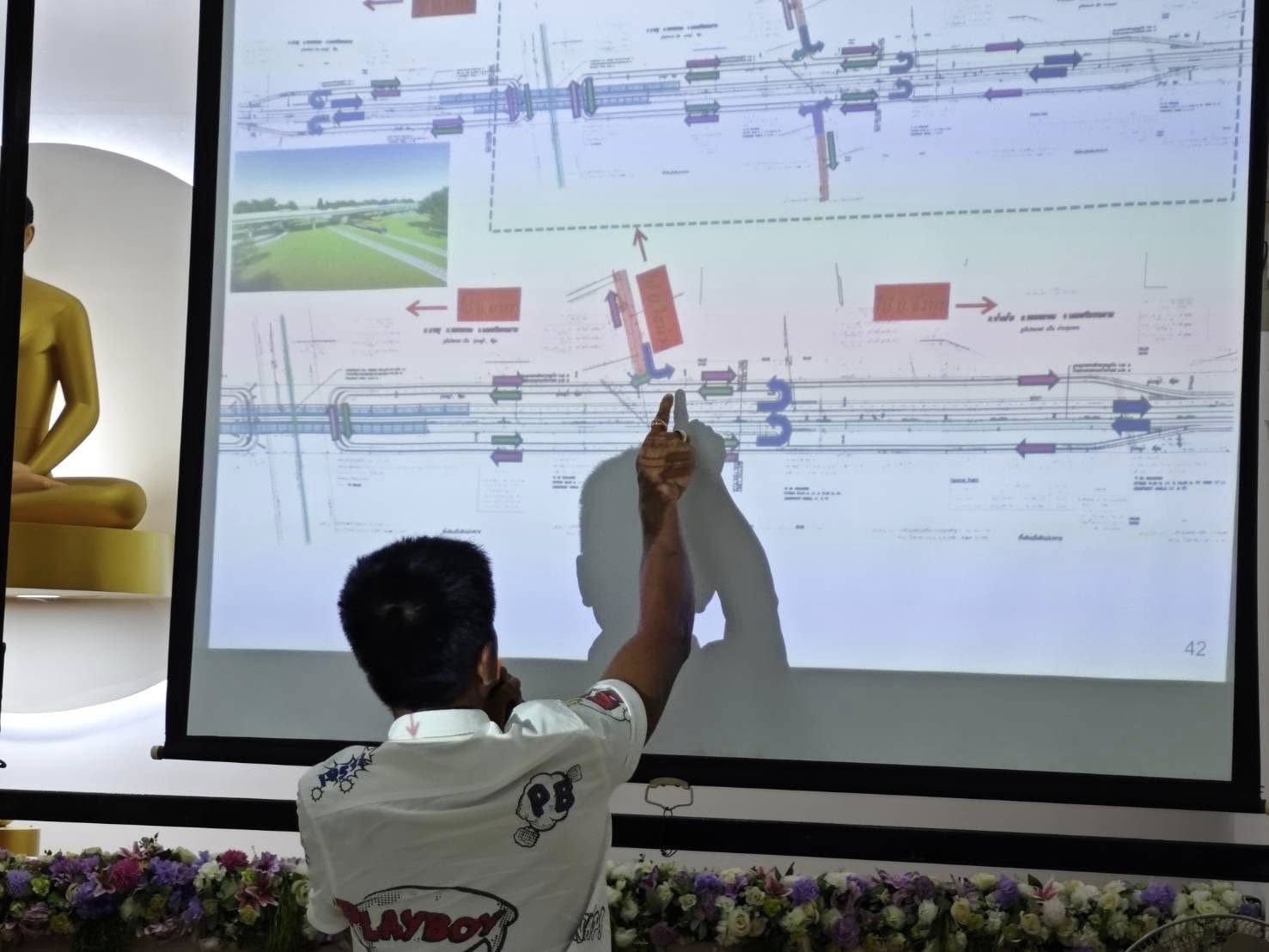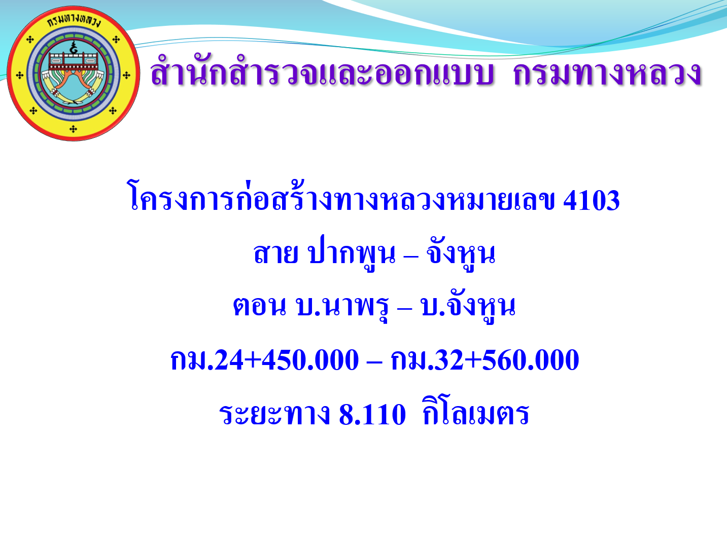 ผู้อำนวยการแขวงทางหลวงนครศรีธรรมราชที่ 1 พร้อมเจ้าหน้าที่ ร่วมประชุมการรับฟังความคิดเห็นและการมีส่วนร่วมของประชาชน โครงการก่อสร้างทางหลวงหมายเลข 4103 สาย ปากพูน - เบญจม ตอน บ.นาพรุ - บ.จังหูน ระหว่าง กม.24+450 - กม.32+560 ระยะทาง 8.110 กิโลเมตร โดยมีหน่วยงานภาครัฐ เอกชน ผู้นำท้องถิ่น ประชาชนในพื้นที่ และผู้ใช้เส้นทางเข้าร่วมประชุม ณ ธุดงคสถานนครธรรม ต.ช้างซ้าย อ.พระพรหม จ.นครศรีธรรมราช ( มติที่ประชุม เห็นด้วยให้มีการก่อสร้าง )